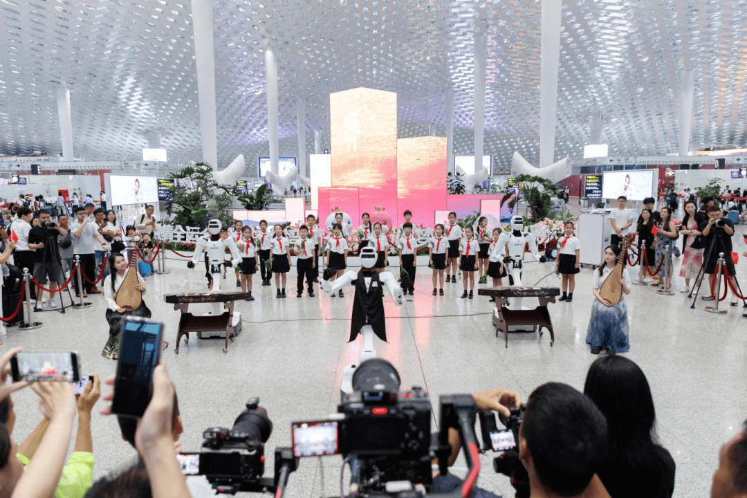 国庆前夜,深圳宝安机场航坐楼内响起音乐声。由央视网取星尘智能结合打制的“小央机械人乐队”,正在此开展国内机场初次人形机械人乐队表演。现场,取深圳市青少年飞越彩虹合唱团、琵琶乐手配合吹奏《茉莉花》,童声取机械人吹奏彼此共同,吸引往来搭客停下旁不雅,部门搭客自动插手合唱,现场不时传出掌声取歌声。
